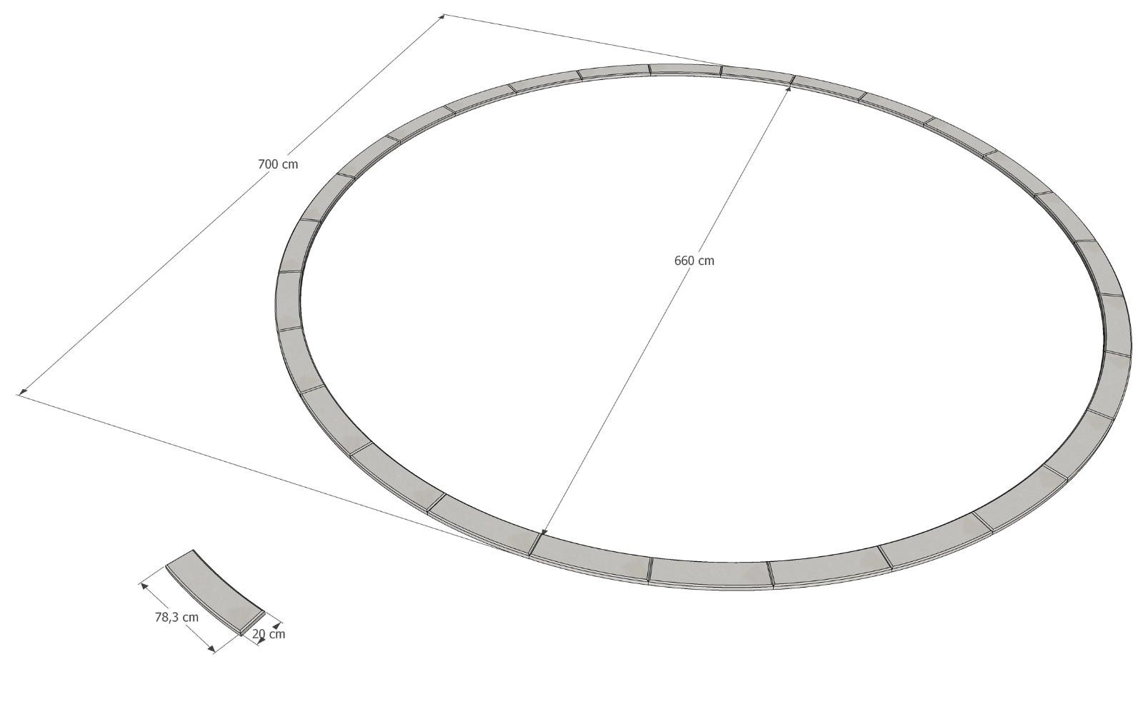 Obrzeże betonowe o średnicy 7 metrów to rozwiązanie dla inwestorów i właścicieli ogrodów, którzy szukają dużych, geometrycznych form do organizacji przestrzeni zielonej. Świetnie sprawdzi się jako opaska wokół rozłożystych drzew, krzewów, dużych rabat lub w roli dekoracyjnego akcentu w reprezentacyjnej części ogrodu.